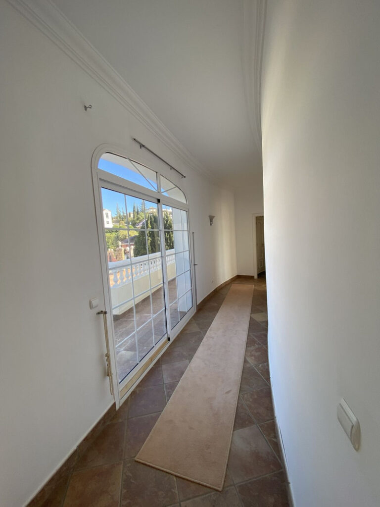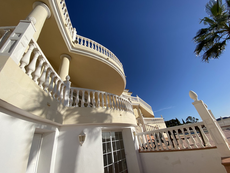 Impressive, front line golf villa with the most stuning views. Situated on the popular Mijas Golf Urbanisation. This is a fantastic location for golf enthusiasts and families alike with bars, restaurants and two 18 hole courses (Los Lago & Los Olivos www.mijasgolf.org) within walking distance of the villa. Lively Fuengirola with its long sandy beach and numerous bars and restaurants is only 10 minutes’ drive from the villa and the quaint whitewashed town of Mijas is also a short drive away. Mijas Golf is one of the most sought after locations on the Costa del Sol because of its brilliant location and close proximity to all this wonderful coastline has to offer, and with the reopening of the 5 Star hotel Byblos which can boast guest such as Princess Diana, its only set to become more saught after. This superb Villa consists of 5 large bright and spacious bedrooms with panoramic views and are all ensuite, the property is air conditioned throughout and has several bright and spacious living areas with a wonderfully presented and well equipped kitchen. The large lounge area is the perfect place to socialise with friends. The upper terrace is the perfect place to sit and soak up the evening sun as it slowly sets over the horizon. For those looking to keep fit there is a gym area with mirrored wall this area also has a steam room/turkish bath. There is also a self contained private apartment with its own entrance and patio area Of course most of your time will be spent outside soaking up the Spanish sunshine on one of the many terraces. The pool has Roman steps to for ease of access easy. There is a lovely covered terraced area adjacent to the pool that is perfect for dinning. The villa also has a grassed area with some fruit trees and well hidden solar panels. Detached Villa, Mijas Golf, Costa del Sol. 5 Bedrooms, 6 Bathrooms, Built 480 m², Garden/Plot 1293 m².
