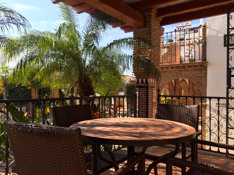 The property has a south facing terrace of 10m2 with views to the courtyard, open plan lounge/dining/kitchen, spacious bedroom and separate bathroom. Parking directly outside. Being located next to one of the many beautiful Spanish style courtyards of this unique urbanisation, the relaxing sound of the water fountain can be heard from the terrace.