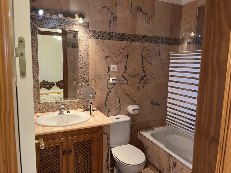 Welcome to this ground floor apartment. The apartment has 3 bedrooms, 2 bathrooms (one on.suite), a large living area, fitted kitchen and an 80m2 terrace surrounding the apartment. It consist of an independent entrance and is right next to the pool, so if you enjoy having a quick swim this is for you. Puebla Aida is a the most beautiful complex on the coast where you can enjoy walks through it cobbled alleyways and sit in the plazas enjoying the sound of water from the fountains. The complex has four swimming pools and beautiful maintained gardens. A must visit. Optional – Underground closed in garage available at 30.000€