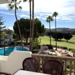 FRONTLINE GOLF OPPORTUNITY! STUNNING 2-bedroom apartment overlooking the fairways of MIJAS GOLF, set within a highly sought-after gated urbanisation. Just a short drive from the vibrant beach life of Fuengirola and La Cala. PRESENTING: 2 bedrooms 2 bathrooms Spacious lounge/dining room Direct access to community pools and gardens Breathtaking frontline golf views and mountain views Attractive design features South-West orientation THE APARTMENT: A few steps lead to the entrance door and welcoming lobby. From here, you enter a bright, open-plan lounge/dining area with double sliding doors opening onto a terrace perfect for al fresco dining, and with direct access to the community gardens and pools. The dining area enjoys exceptional views over the lakes and greens of the golf course through a charming bay window. Fully fitted semi-open kitchen with breakfast bar (all white goods included). The apartment offers a double guest bedroom with a private terrace overlooking the golf course, and a master bedroom—also with terrace access—featuring a spacious en-suite bathroom. COMMUNITY FACILITIES Superb heated pool Children’s pool Beautifully maintained mature gardens Easy street parking ADDITIONAL FEATURES Marble floors Hot/cold air conditioning to bedrooms LOCATION Situated beside the 18-hole Championship courses of Los Lagos and Los Olivos at Mijas Golf, the apartment is within walking distance of several highly regarded restaurants. Viewing is highly recommended to appreciate this exceptional property with its spectacular open golf views. DRIVING DISTANCES Mijas Golf Clubhouse & La Zambra 5* Hotel – 2 minutes Fuengirola / Beach – 8 minutes Málaga Airport– 22 minutes Marbella – 25 minutes Middle Floor Apartment, Mijas Golf, Costa del Sol. 2 Bedrooms, 2 Bathrooms, Built 82 m², Terrace 17 m². Setting : Frontline Golf, Close To Golf, Urbanisation. Orientation : South. Condition : Good. Pool : Communal. Climate Control : Air Conditioning, Hot A/C, Cold A/C. Views : Golf, Panoramic, Garden, Pool. Features : Covered Terrace, Fitted Wardrobes, Near Transport, Private Terrace, Ensuite Bathroom, Marble Flooring, Restaurant On Site. Furniture : Fully Furnished. Kitchen : Fully Fitted. Garden : Communal, Landscaped. Security : Gated Complex, Safe. Category : Golf, Holiday Homes, Investment, Resale.