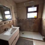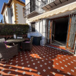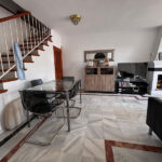 Built with high-quality materials, the townhouse includes marble flooring, renovated double-glazed windows and patio doors with wood-effect finishes, fitted wardrobes, and air conditioning with heat pump in the living room and both bedrooms and electric awning. Additional storage space is conveniently located under the staircase.